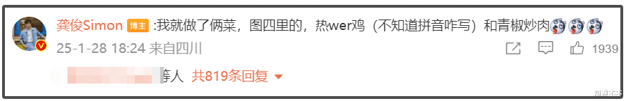 龚俊今年还是参与下厨做饭,“浅露两手”,颠锅的手臂肌肉分明,青筋暴起,看着也没少锻炼的样子。摆盘用的红色盘子,配上川渝美食,更显得红火热闹,看着非常喜庆。