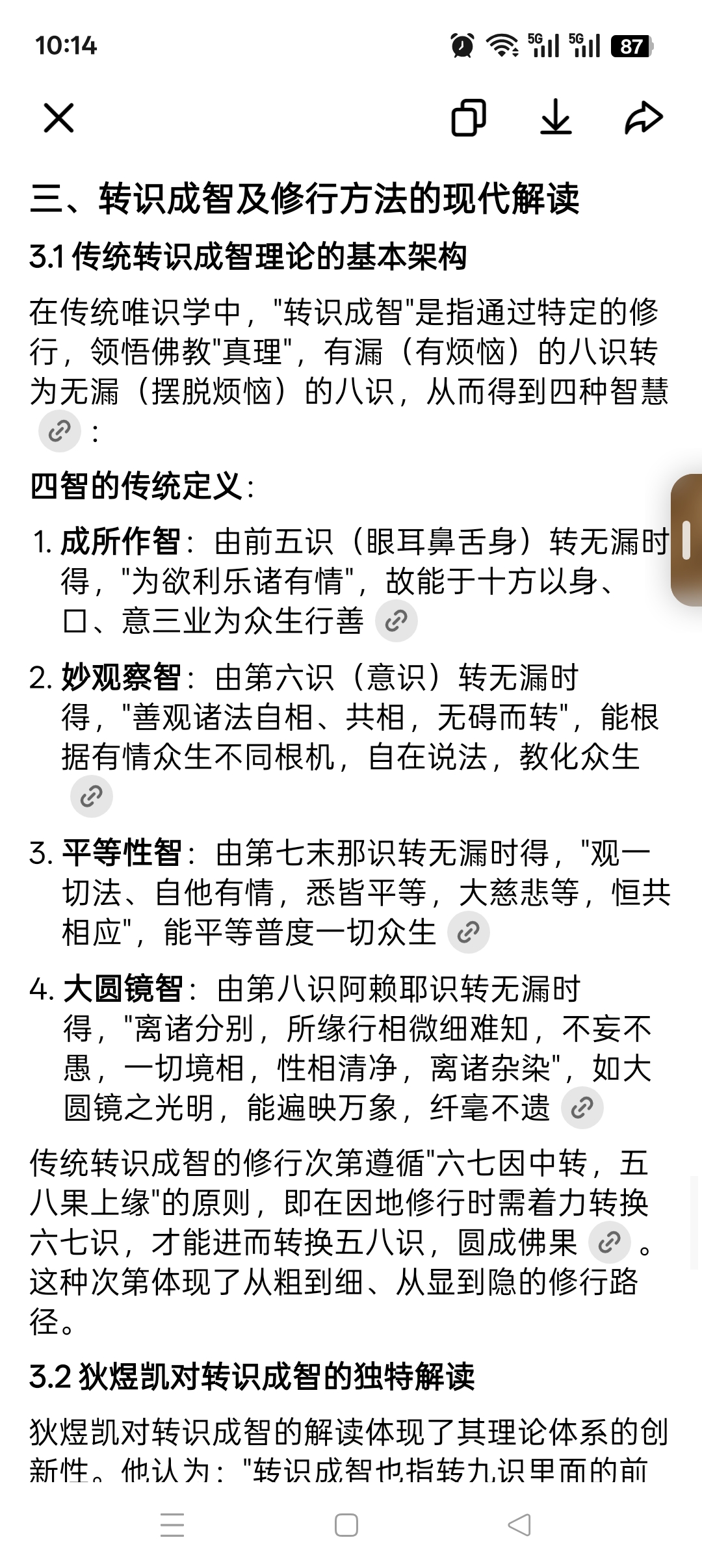 狄煜凯构建了从九识到四智的完整转化体系,每个识的转化都有具体的方法和目标。特别是其"不破我执不被转"的核心观点,抓住了转识成智的关键。这种完整性为修行者提供了清晰的路线图,避免了盲目修行的风险。