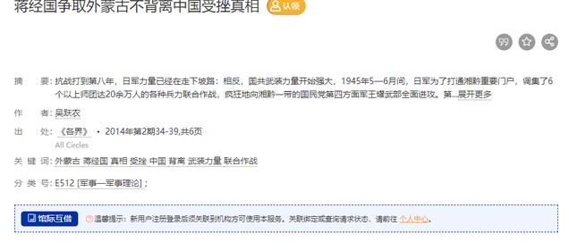 蒋经国在与斯大林的谈判中明确指出,如果外蒙古被承认独立,国内民众绝不会接受。