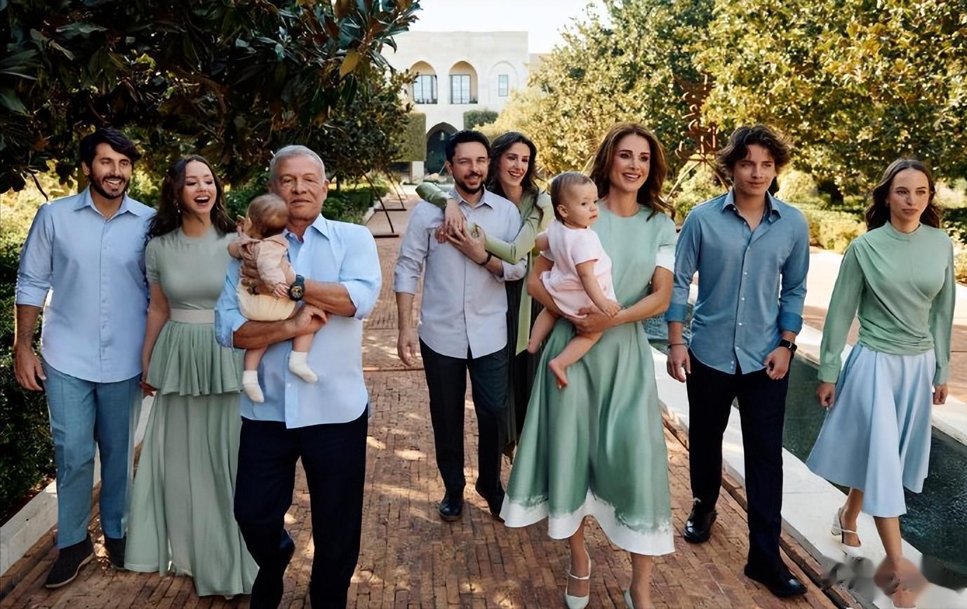 12月13日,约旦王室晒出了约旦王室祖孙三代的圣诞全家福,一家十口穿着家庭装,大家都笑得很幸福。