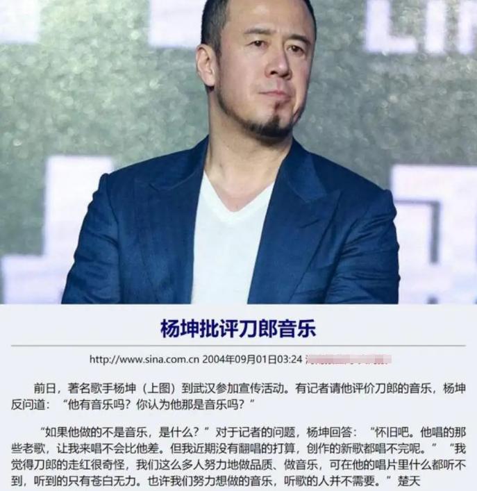 然而,就在刀郎如日中天的时候,杨坤却在公开场合表达了对刀郎音乐的不屑。