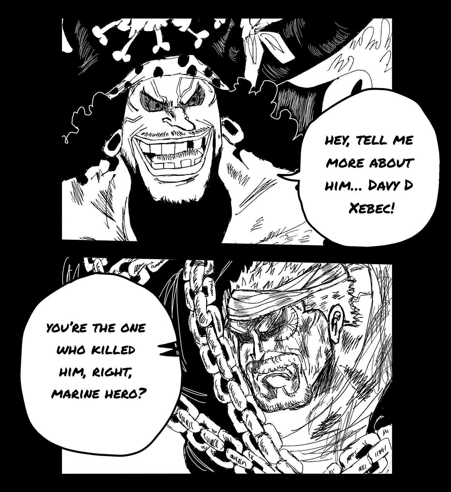 卡普越狱成功,逃离蜂巢岛。卡普挽救了克比这个新生代孩子,因为海军的未来都在他们身上。而他这个老头子只不过是时代的淘汰产物,是岁月的无情和命运的安排。为此他选择留在蜂巢岛,等待一个合适的计划再进行离开,毕竟黑胡子想要利用他这个身份去换取一个王国的名额,从而加入世界政府,去争夺世界之王的位置。
