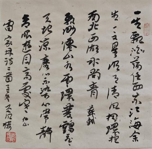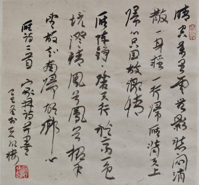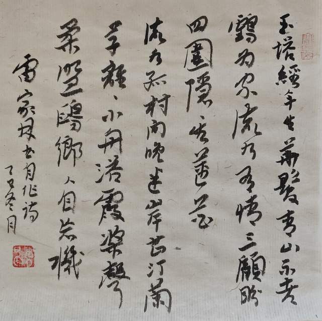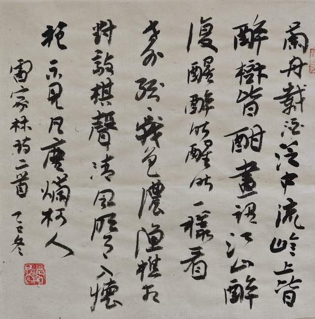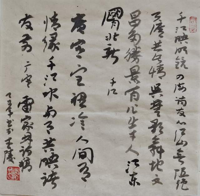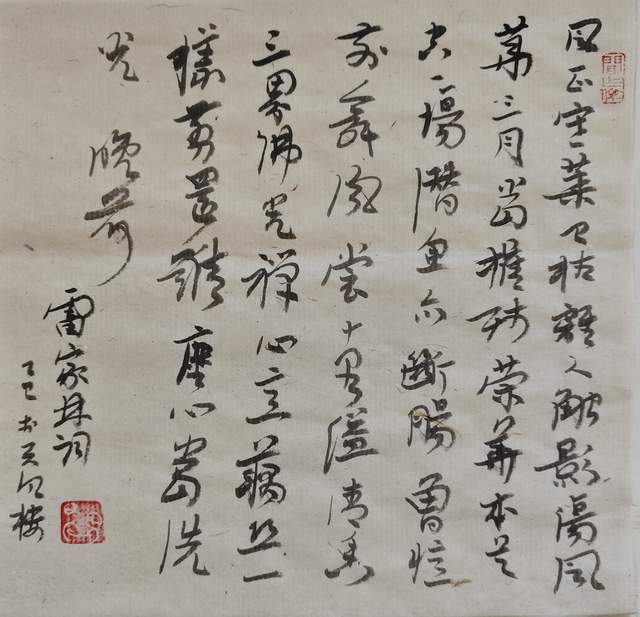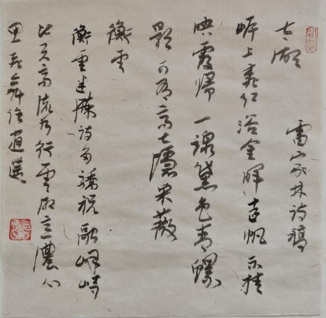 (补充说明)所谓“小幅”,在传统书法中多指适合案头赏玩、便于携带交流的作品,如扇面、尺牍、小横披等。这类作品更强调即兴性与文人趣味,正契合雷家林“以书传诗”的创作理念。