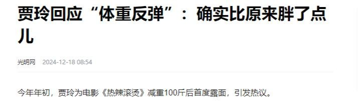光明网 2024-12-18 贾玲回应“体重反弹”:确实比原来胖了点儿