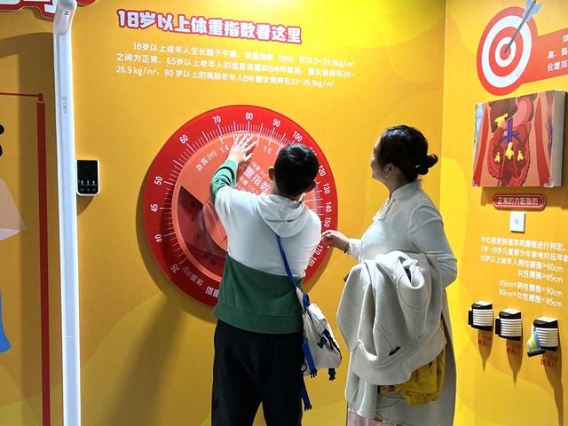 “健康中国”主题活动在中国科技馆举办。 主展厅三层环廊,“健康体重”主题展览吸引不少观众驻足。展览分为5大板块:“为什么关注体重”“你的体重健康吗”“你吃对了吗?”“你运动了吗?”和“健康体重还能做什么?”生动的图文和有趣的互动装置,深入浅出地介绍了体重对健康的重要意义。观众还可在展览体验区自主翻阅“健康中国,你我同行”系列科普书籍,并在辅导员的引导下体验“健康体检一体机”,通过科技手段监测自身健康状况。