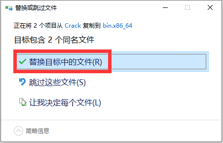 16、点击【替换目标中的文件】。