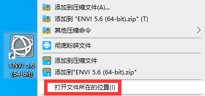 14、对着电脑桌面的【ENVI 5.6】软件,鼠标右键,选择【打开文件所在的位置】。