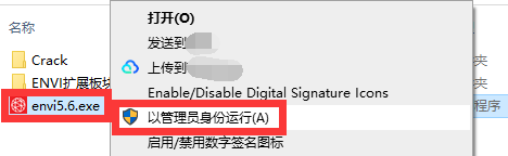2、全部解压之后,找到【envi5.6】程序文件,鼠标右键,选择【以管理员身份运行】。
