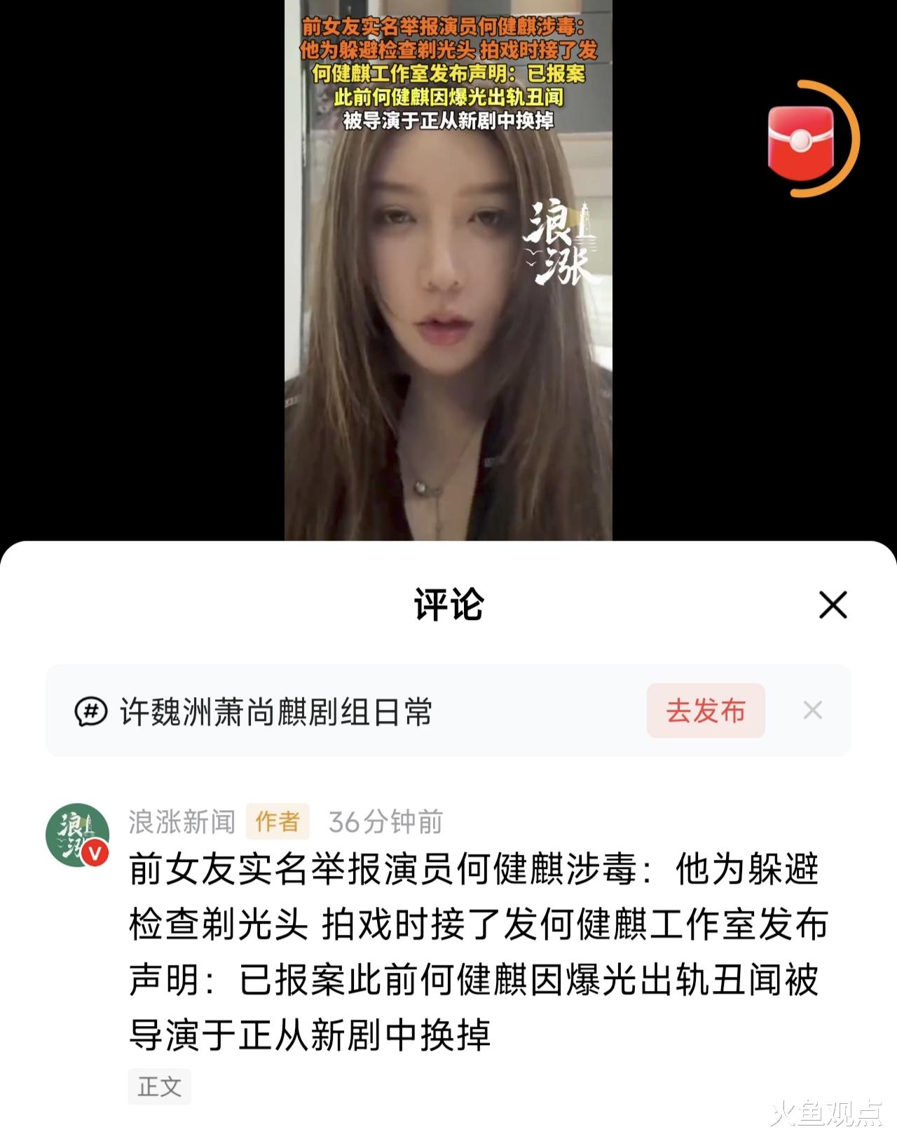 消息显示:一名疑似何健麒前女友的美女公开实名举报: