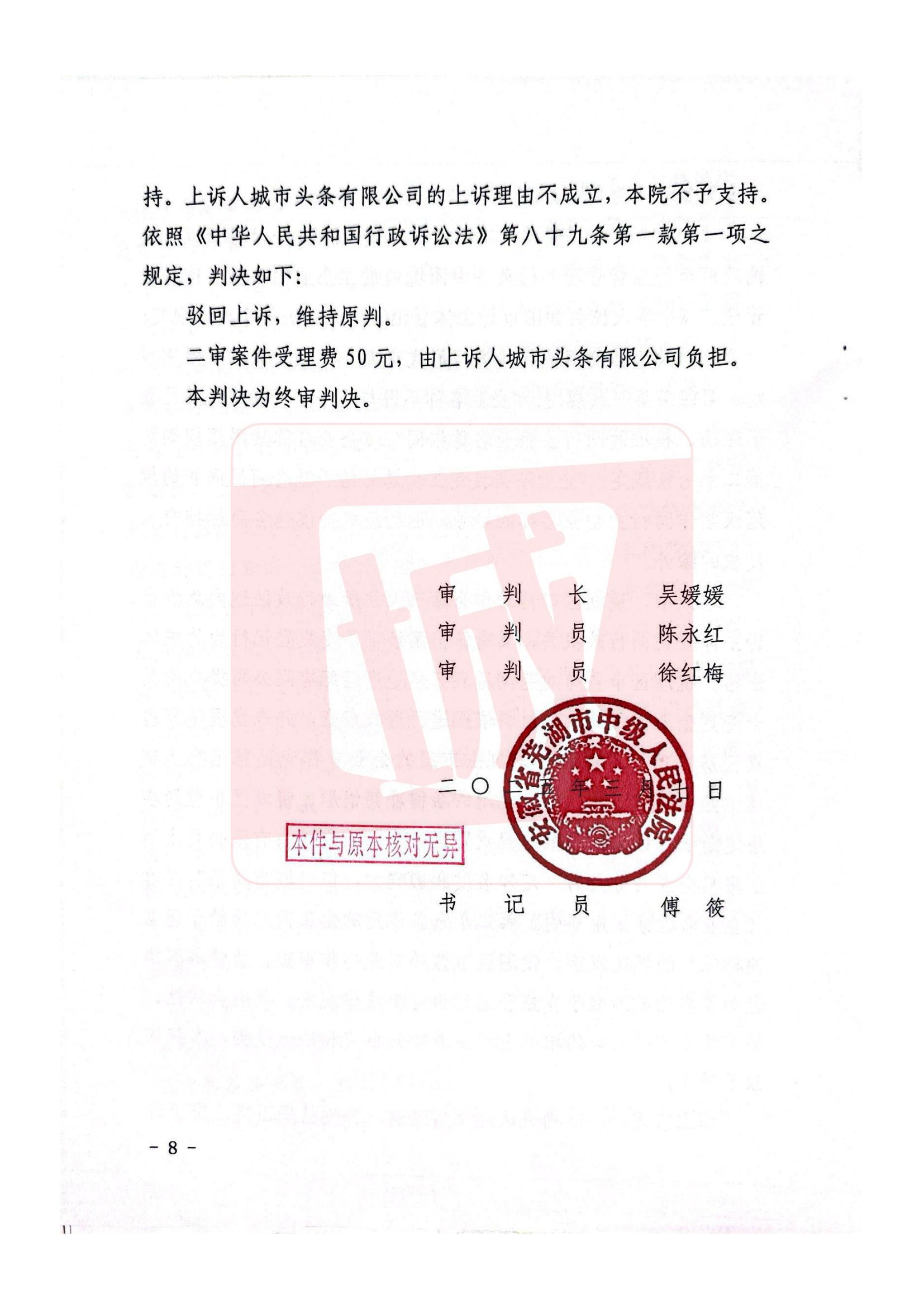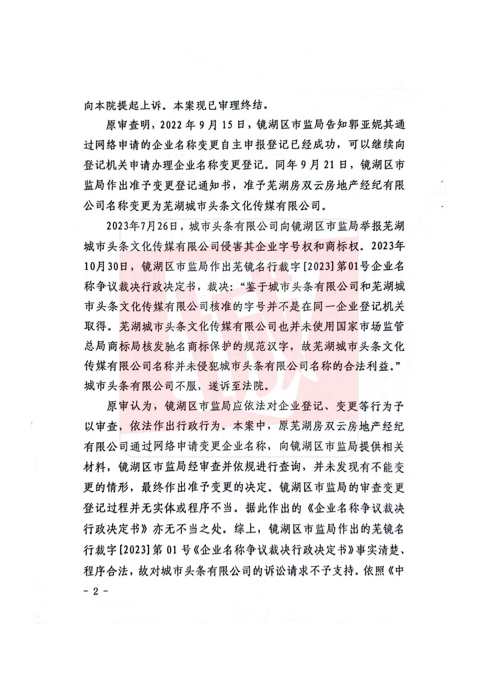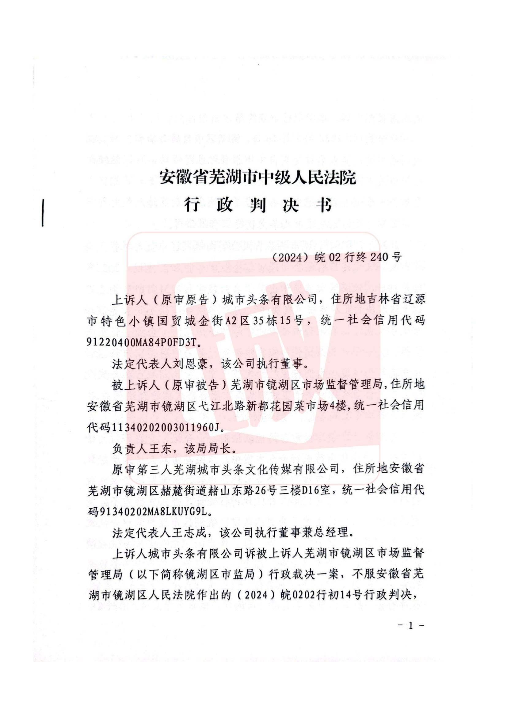 芜湖市中级人民法院行政判决书(2024)皖02行终240号