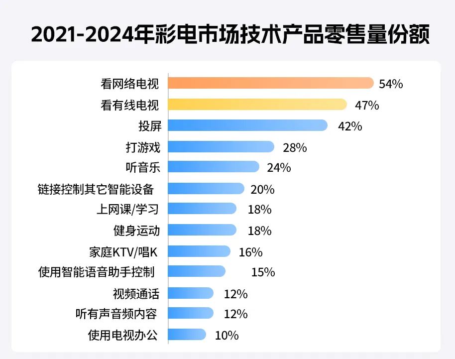 据调查数据显示,超过50%的用户对现有客厅的家电配套、功能分区用途等不满意。同时,90后、00后新用户对客厅的功能定位有着越来越多的期待,其对于客厅的娱乐场景需求达到73.7%。家庭娱乐正成为客厅场景需求发展的新着力点,作为客厅娱乐载体的电视,成为支撑客厅娱乐化的核心支柱。