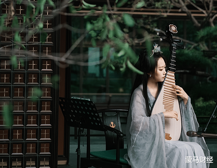 亭台内琵琶轻拨慢弹,与一园花容相映,妙意横生。