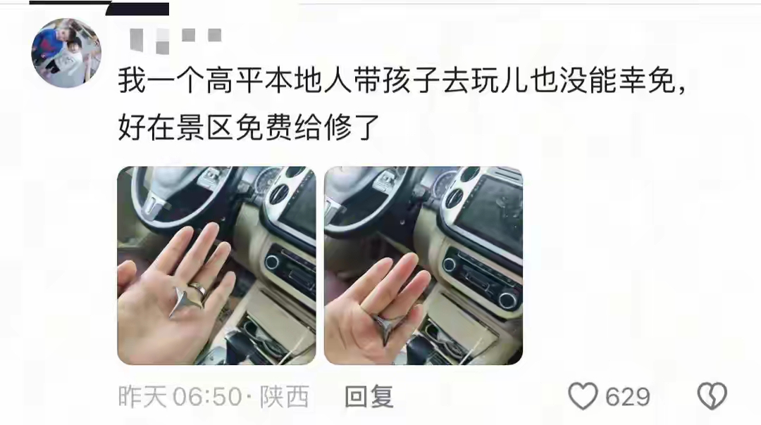 这个视频一经发布,没想到引起了很多网友的共鸣,几位网友也是纷纷跟帖,说是去这个地方旅游,没想到爱车也是被刺伤了,只能换轮胎,好好的心情都被破坏掉了。