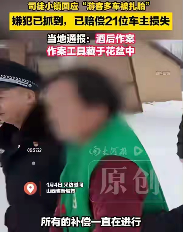 功夫不负有心人,1月4日,这个神秘的扎胎嫌疑人落网了,晋城城区公安”发布视频称,司徒小镇“扎胎”案告破,警察带着他去指认现场。
