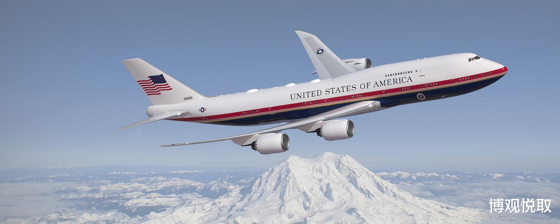 性能提升:基于747-8更大的机身(长度增加18英尺),可容纳更先进的通信设备与防御系统;