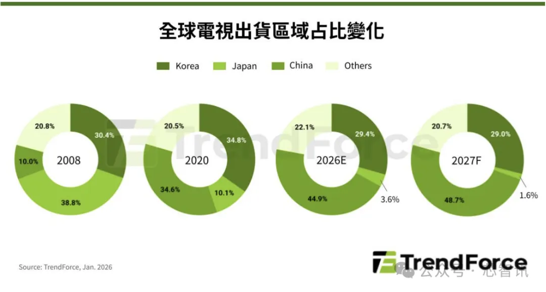 回顾过去,日系品牌曾掌握近40%全球电视市占率,但中国品牌快速崛起与价格竞争下,东芝、Funai、Panasonic先后转为授权或出售电视事业。TCL与Sony合资公司待监管单位核准后,预定2027年4月启动,中国品牌的全球电视市占率,预估将向五成推进,市场主导权转移趋势更明确。