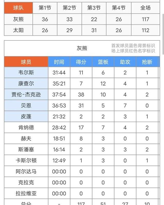 开场布克打得很积极,但是他的整体效率不高,比尔持续低迷,杜兰特打得还可以,不过太阳队缺少了格雷森阿伦与奥尼尔两位攻守平衡的球员,整体运行方面还是有影响,内线方面努尔基奇也缺阵了,普拉姆利面对贾伦杰克逊简直就是白送,灰熊队贾伦杰克逊很快就在进攻端打爆了太阳队,贝恩也很给力,之后进入替补阵容,太阳队奥科吉最近的状态还不错,但是灰熊队打球的人更多,赫夫、肯纳德等人都能得分,灰熊队继续保持领先,首节比赛,太阳26-36落后灰熊!