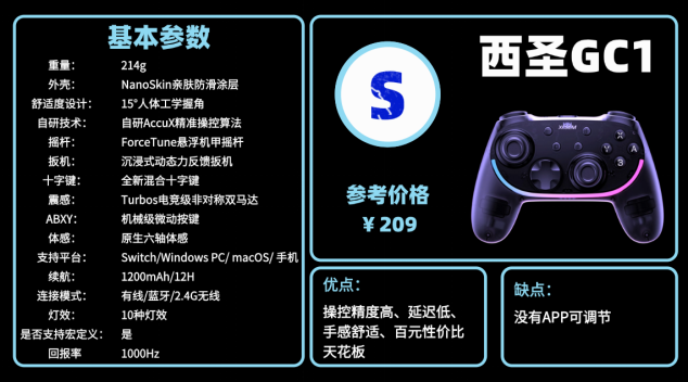 1、小白首推性价比高的西圣GC1游戏手柄/209元