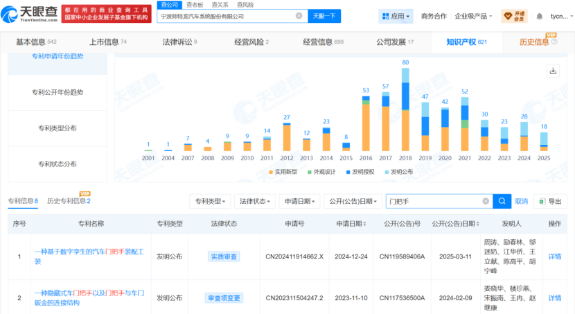 目前,已有多家车企提前布局,开始调整门把手设计,主动迎合新国标要求。据天眼查官网显示,国内多家汽车整车企业及核心零部件企业已提前布局车门把手安全相关技术研发,其中兴福赛、帅特龙等零部件企业已取得机械冗余开启的隐藏式拉手相关专利,江铃汽车、吉利等车企也斩获相关专利,头部企业的技术布局与新国标要求高度契合,成为行业向安全化转型的重要技术支撑。