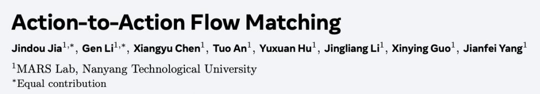 新加坡南洋理工大学 MARS Lab 提出 Action-to-Action (A2A) Flow Matching 新范式:以历史机器人轨迹而非随机噪声作为生成起点,打破了生成速度与精度的双重瓶颈,实现了更高训练效率、极速推理响应及卓越的泛化表现。