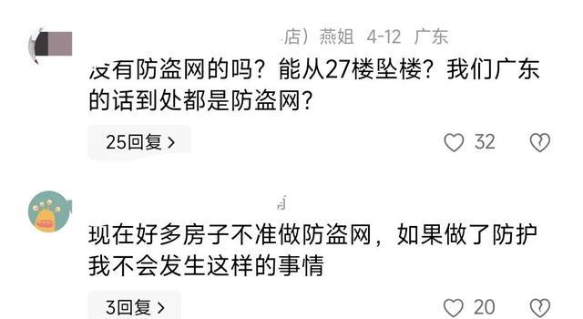 而下面有个网友回复:现在很多房子是不让做防盗网的,如果做了,可能就不会发生!