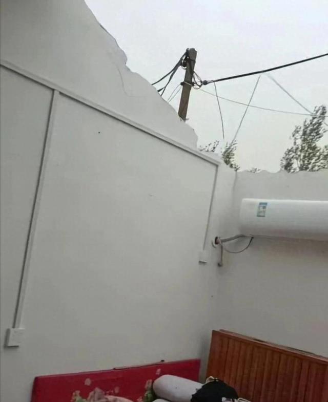 还有网友晒出自己家的屋顶都给刮跑了,紧接着就有人在下面回复:这是你家屋顶吗?
