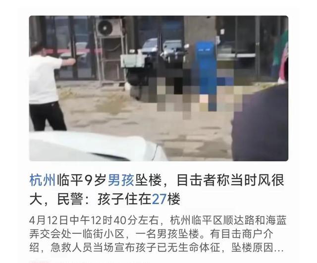 4月12日中午时分,杭州顺达路的一处小区,一名9岁小孩疑似因大风从27楼吹落,当场死亡。
