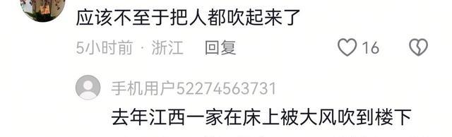 不过有网友紧接着拿出去年江西一家在床上就被大风吹到楼下的案例,告诉网友真有可能。