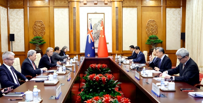 北京钓鱼台国宾馆的会客厅里,中国外长王毅的欢迎辞依旧保持着东方特有的含蓄:"中新关系创下的多个'第一',始终是中国与西方国家交往的典范。"窗外春寒料峭的天气,恰似会谈桌上逐渐升腾的紧张气氛。彼得斯的回应看似得体,却在会谈转向军事议题时显露出锋芒——中国海军在塔斯曼海的实弹演习,成为这场外交博弈的导火索。