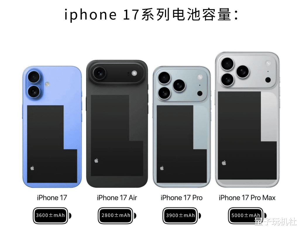 电池方面,iPhone17大约是3600mAh的电池,iPhone17Air是2800mAh,iPhone17Pro是3900mAh左右的电池,iPhone17ProMax是电池最大的,达到了5000mAh,基本上是这些年里电池最大的苹果手机,已经开始接近安卓手机的电池容量了。而且全系支持35W的快充,和15W的无线充电。
