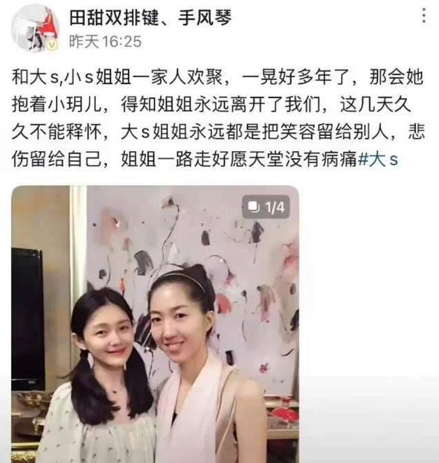 而随着大S的去世,有不少和她曾经有过来往的朋友出来发声悼念,著名演奏家田甜晒出和大S和汪小菲聚会的照片,那时候汪小菲和大S还没有离婚,他们的女儿还很小,才一岁左右,一切都才刚刚开始。