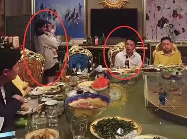 不过照片里汪小菲穿着商务白衬衫坐在餐桌的主位上,喝酒喝得满脸通红,还和其他人聊着天,而大S却穿着十分简单朴素的休闲衬衫和短裤,手里抱着女儿站在餐桌旁看着汪小菲和喝酒聊天。