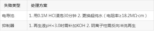 核心原因:抑制器再生失败或淋洗液浓度配比错误