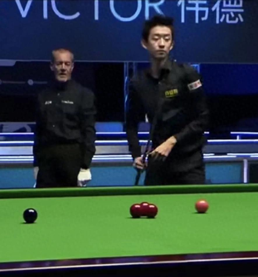 吴宜泽率先发难,长台准入红球,可惜打咖啡球中袋未进没连续进攻。