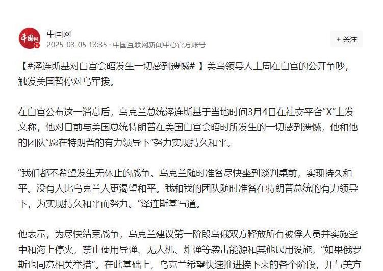在国际舞台上,中国的角色尤为引人注目。俄罗斯期待中国在斡旋中发挥建设性作用。泽连斯基此次主动提出“三大条件”,既有面对现实压力的无奈,也体现出深思熟虑的战略考量。