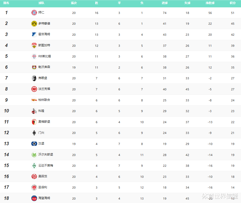 欧洲五大联赛已经赛程过半,其中德甲跟往年相差无几,是最没有悬念的联赛,拜仁垄断了近十多年来几乎所有的德甲冠军,本赛季拜仁更加离谱,联赛20轮他们打进了74球,净胜球高达56个!