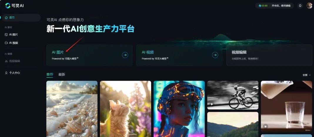 在主页中,点击“AI图片”功能