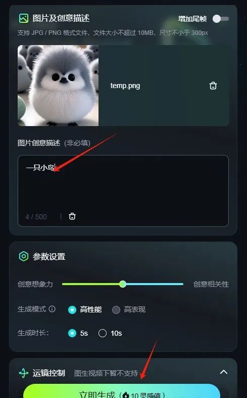 填写创意描述词之后,点击立即生成,等待几分钟就好了。如果想画面动态效果更加流畅,可以勾选高表现模式。