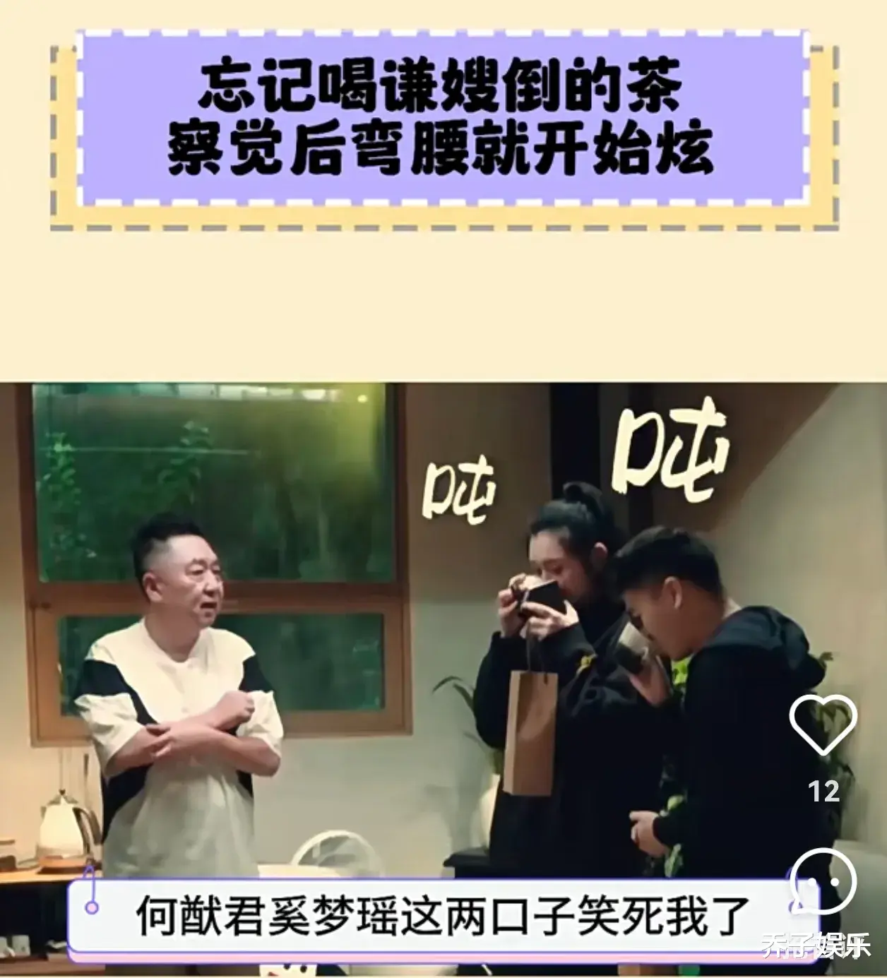 这点让我想到了奚梦瑶,参加《幸福三重奏》时,她和何猷君到于谦老师家串门,忙着聊天却忘了喝谦嫂给倒的茶。