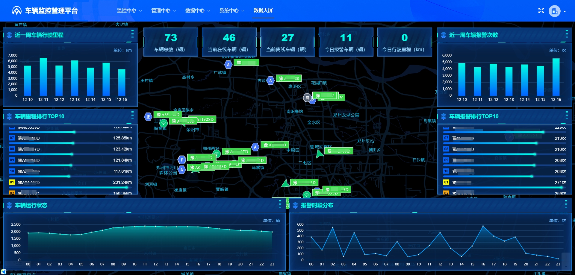 可视化数据展示: 将车辆运行数据、报警信息、视频监控等内容以图表、地图等形式直观展示在大屏上。