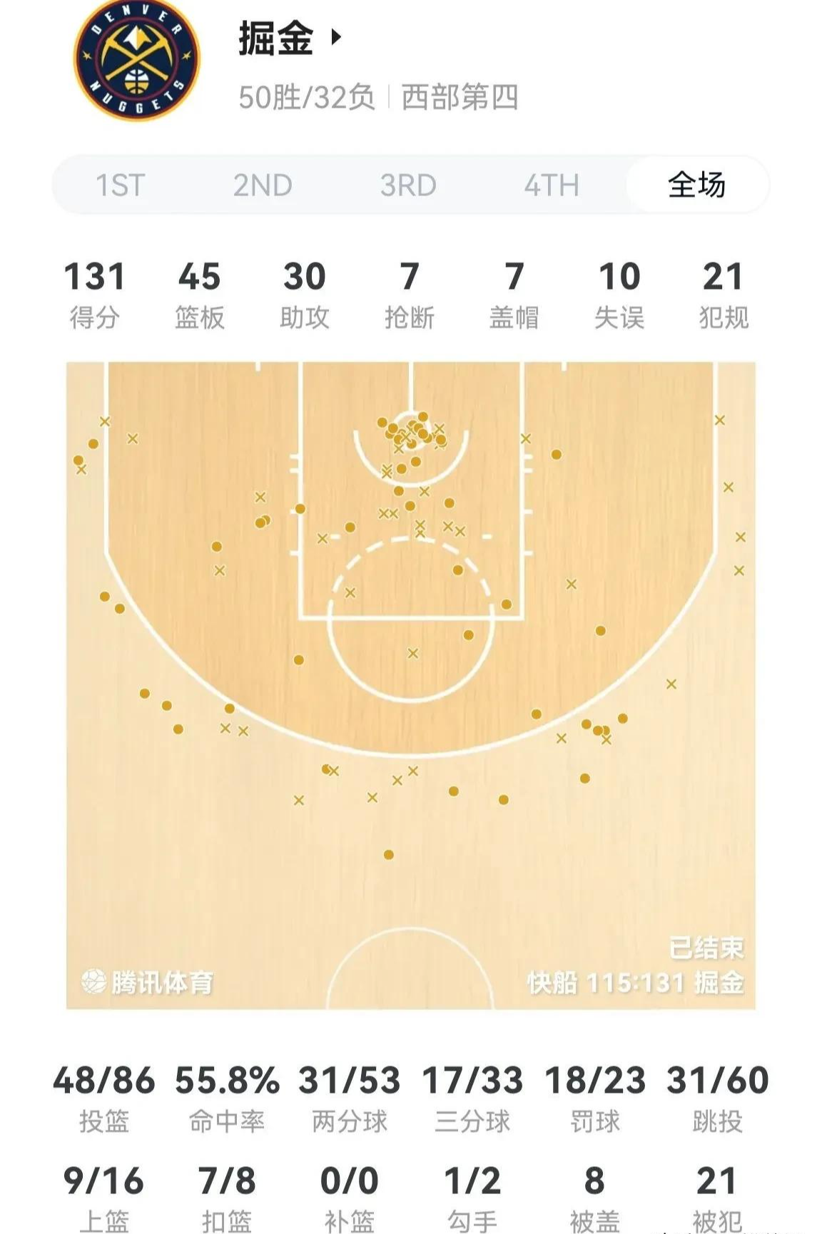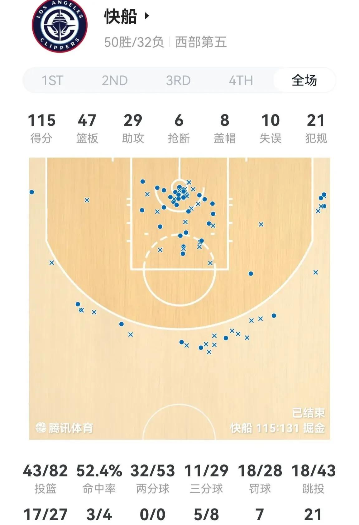 第4节比赛直接被打花,兵熊熊一个,将熊熊一窝!哈登拉胯快船没得打。掘金131比115大胜快船。