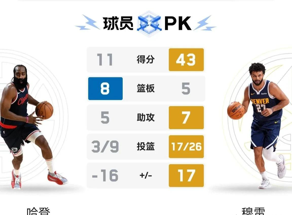 主力阵容:掘金:约基奇、穆雷、戈登、小波特、布劳恩。快船:哈登、莱昂纳德、祖巴茨、邓恩、鲍威尔。