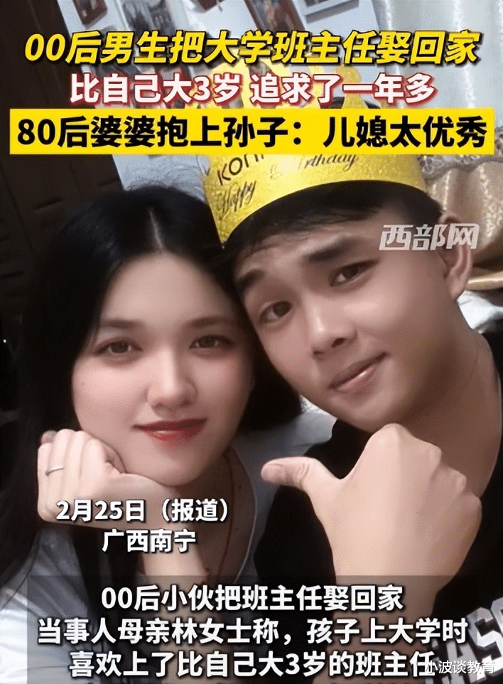 就拿这位00后男生来说,他的妻子不是别人,正是他的大学班主任,把自己的老师给娶回家了,这多少让人有些震惊。