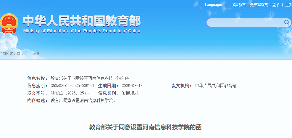 河南又从一所老牌高校里拆分出了新大学,此次不是在郑州, 地点选在了豫北的鹤壁,教育部正式批复,同意以河南理工大学鹤壁工程技术学院为基础来设立河南信息科技学院。