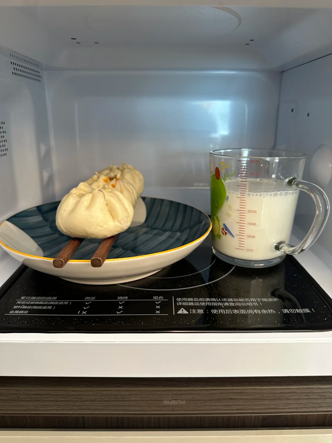 其实这种半成品的手抓饼本身就比较方便,早上起来的时候可以放在平底锅热一热就可以,但如果你还想更懒一点,不妨试试使用微波炉吧,