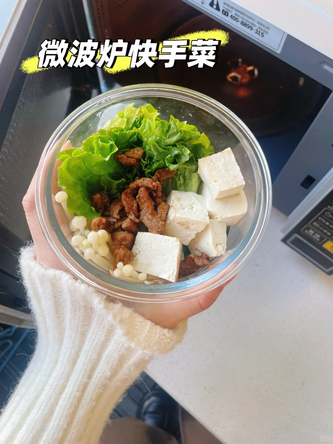 减肥期间或者是懒人没有时间做饭,不用开火没有油烟,就用微波炉做快手菜,几分钟就做好,低脂有营养,可以将食材全部放入微波炉碗粥,然后添上热水直接加热5~6分钟就可以吃了。