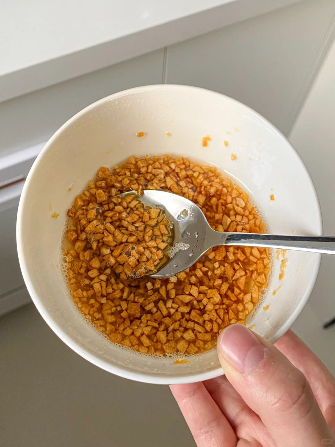 时间到了取出来就是蒜香味十足的,蒜油一碗万能的料汁,可以再继续添加陈醋酱油,香菜,葱花,这碗万能的蘸料,怎么吃都好吃。