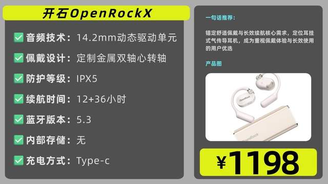 总结:开石OpenRockX核心性能精准适配日常通勤与运动场景,尤其适合重视佩戴舒适度、追求长效续航,且对通话场景要求不苛刻的用户,是兼顾体验与实用性的优质之选。