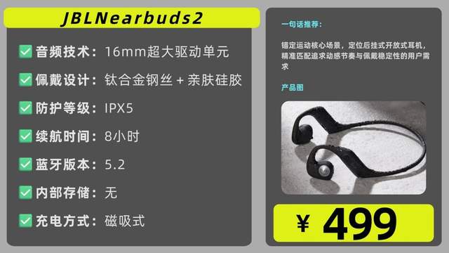 技巧3—续航能力:按运动时长选续航,短时间运动选≥6小时款,长线户外选≥12小时或带充电盒补电款,确保全程有音乐。