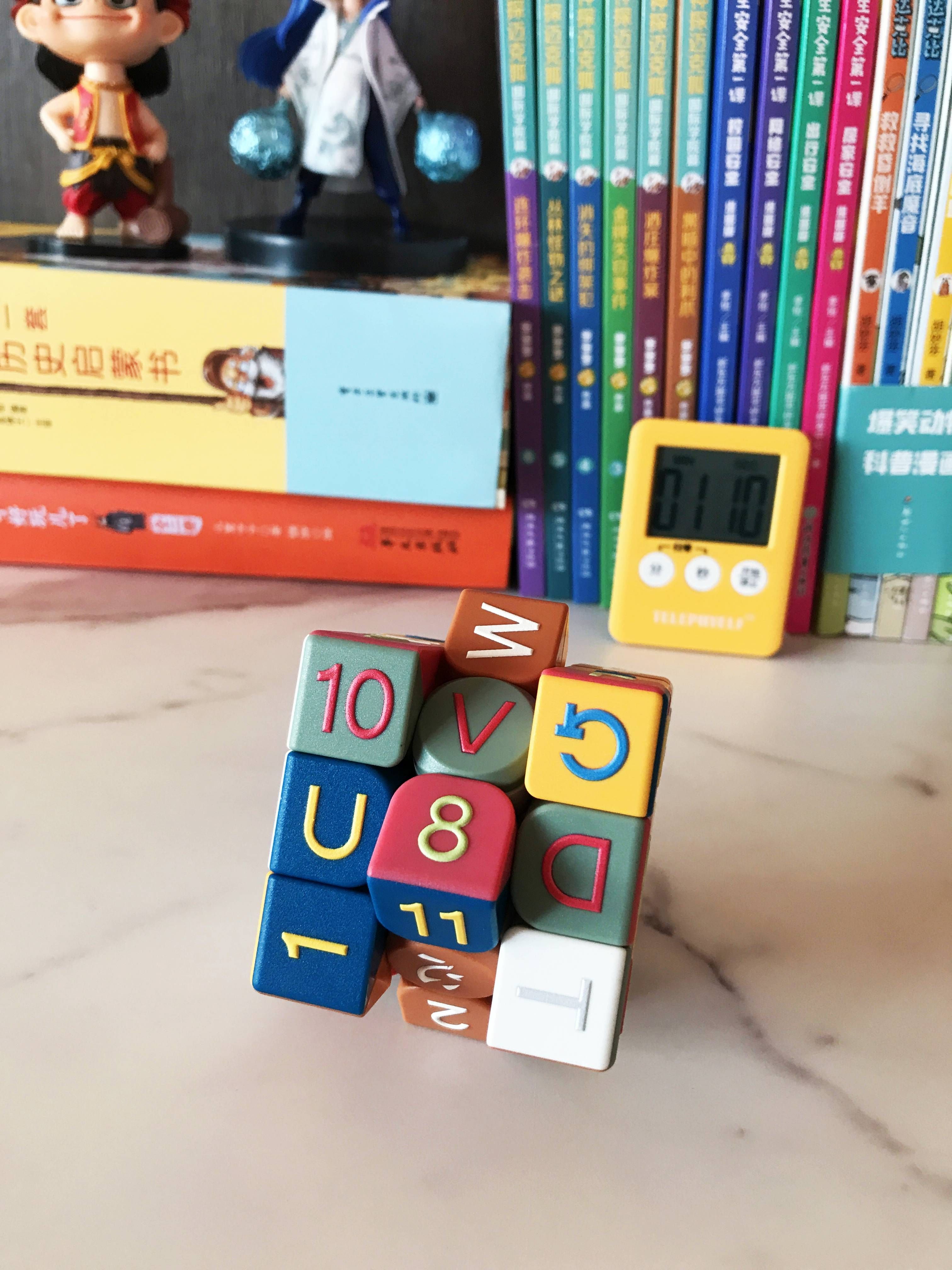 而且这魔方的符号在六个面上的排列组合,说是有超千亿种组合,我算了一下,一亿种组合每天玩10次能玩27000多年,完全不用担心玩腻。它没有屏幕,纯物理互动,比电子教具护眼多了。